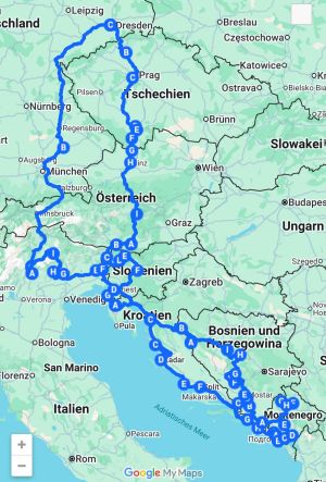 So langsam machen wir uns auf den Weg Richtung Heimat. Wir fahren bis nach Senj in Kroatien. Hier hatten wir auf der Hinfahrt einen wirklich schönen Stellplatz mit einer kleinen Bucht. Und ohne damit zu rechnen bekommen wir wieder „unseren“ Platz und können nochmal die türkisblaue Adria genießen. Am Morgen fahren wir über Slowenien nach Triest - drei Länder in 45 Minuten Fahrt!