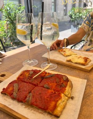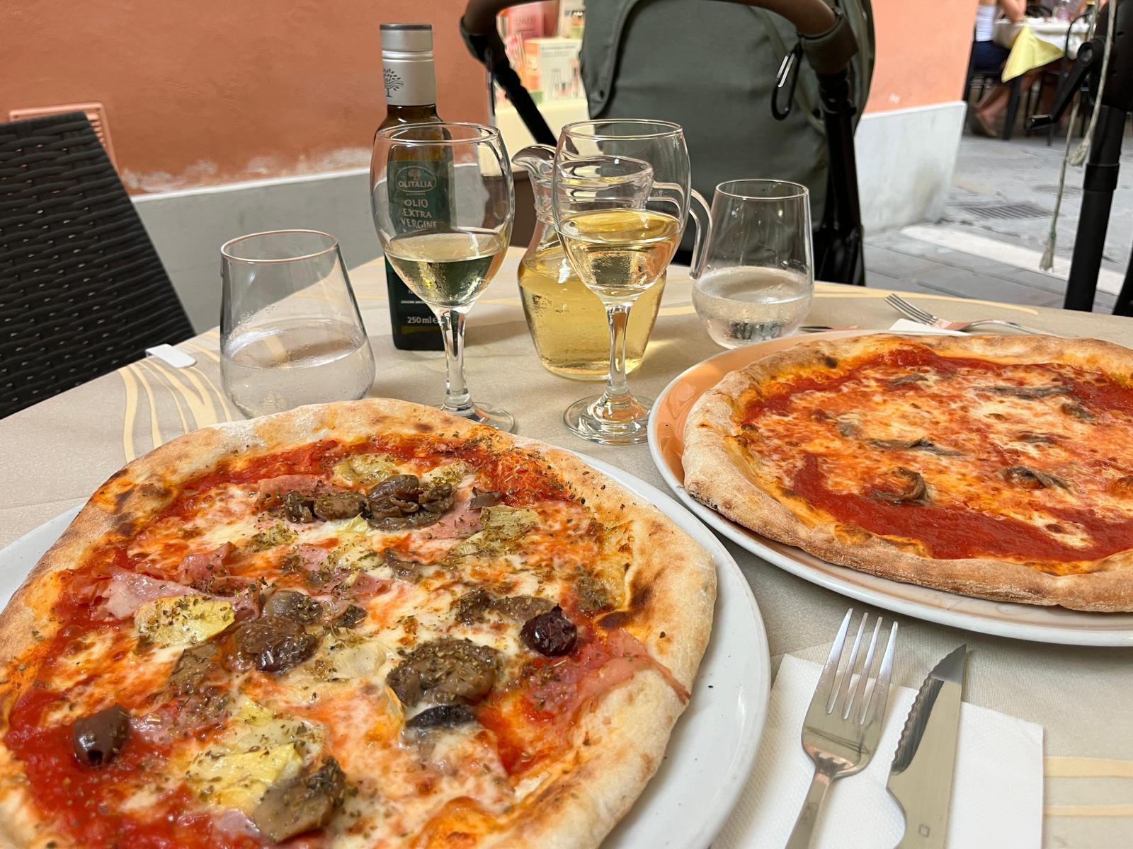 Mit dem öffentlichen Bus fahren wir vom Berg runter und genießen „la dolce vita“ - Eis, Spritz, Pizza und Sightseeing! Maik ist nicht ganz so angetan - die riesige urige Piazza mit den Cafés, die in Italien das Zentrum bildet, fehlt! Vier wunderschöne Kirchen und ein weiterer ‚Espresso Freddo‘ runden den Tag dann doch ab.