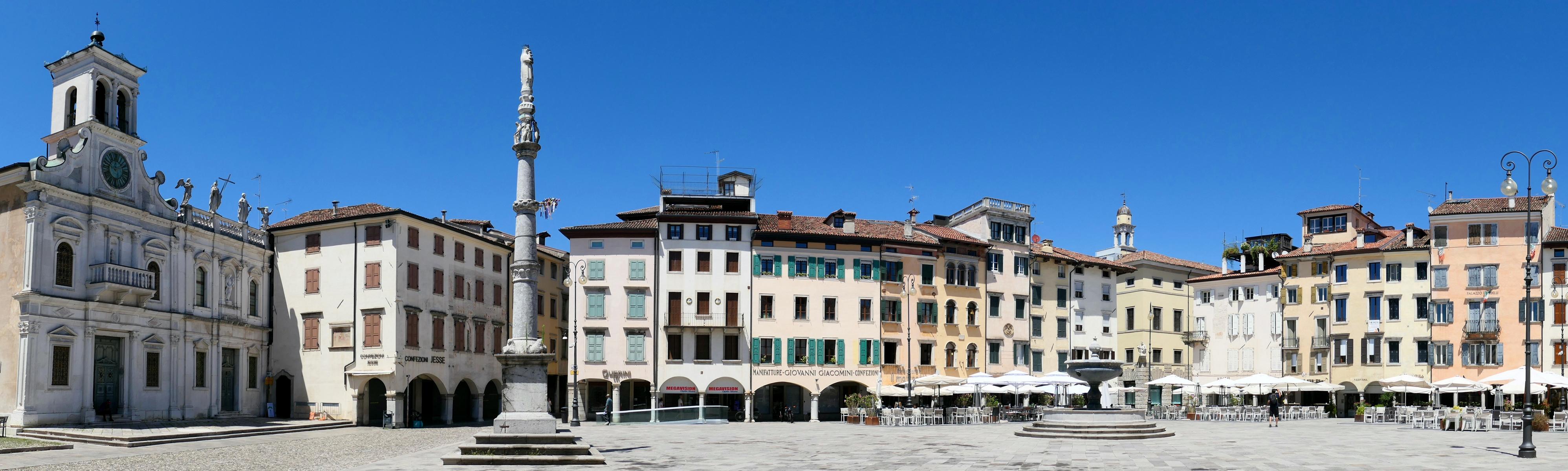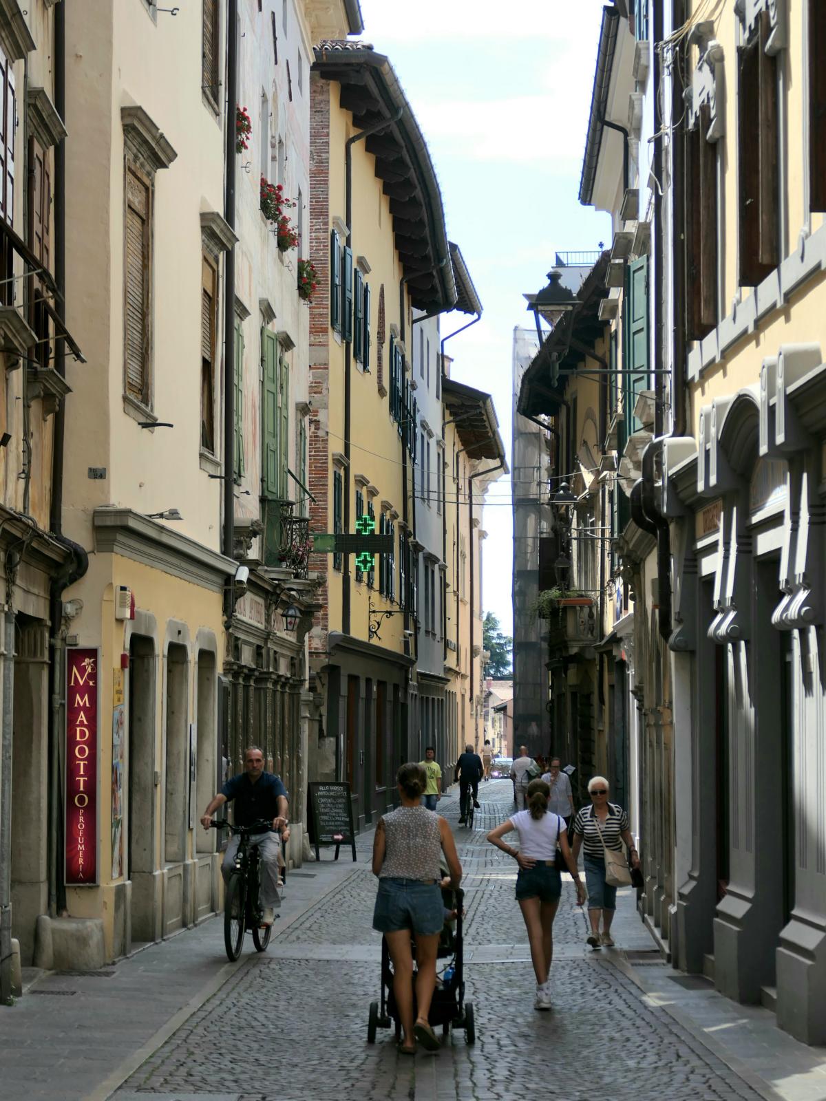 Um in die Dolomiten zu kommen, durchfahren wir die herrlichen Prosecco- und Grappa Regionen mit ihren kleinen Städtchen. Unser Geheimtipp ist Udine - mittelgroß, schnuckelig, mit vielen Geschäften und einer großen Piazza mit Cafés für Maik und einem Brunnen für Jannis!